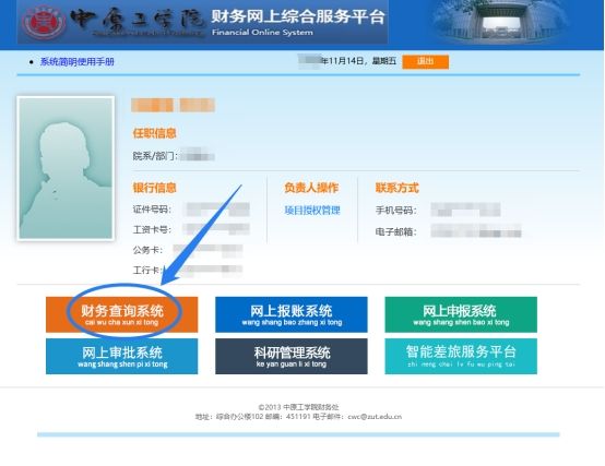 Step3:进入【财务网上综合服务平台】,点击【财务查询系统】。