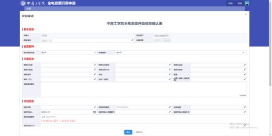 进入开票申请界面,按要求输入相关信息,按照提示上传相关文件,标示“*”项目为必填项。